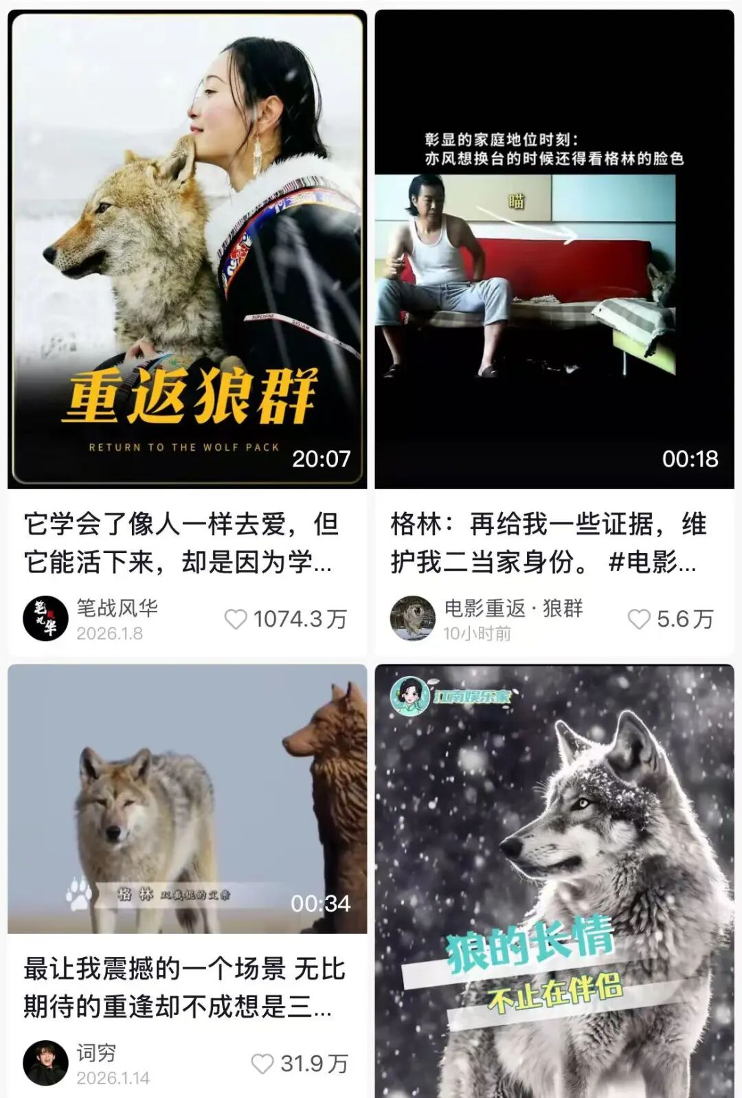 今年1月8号,抖音博主笔战风华发布了《重返·狼群》视频解说。
