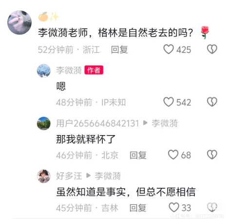 尽管李微漪亲自下场,向人们说明,格林最终的结局,是自然老去。