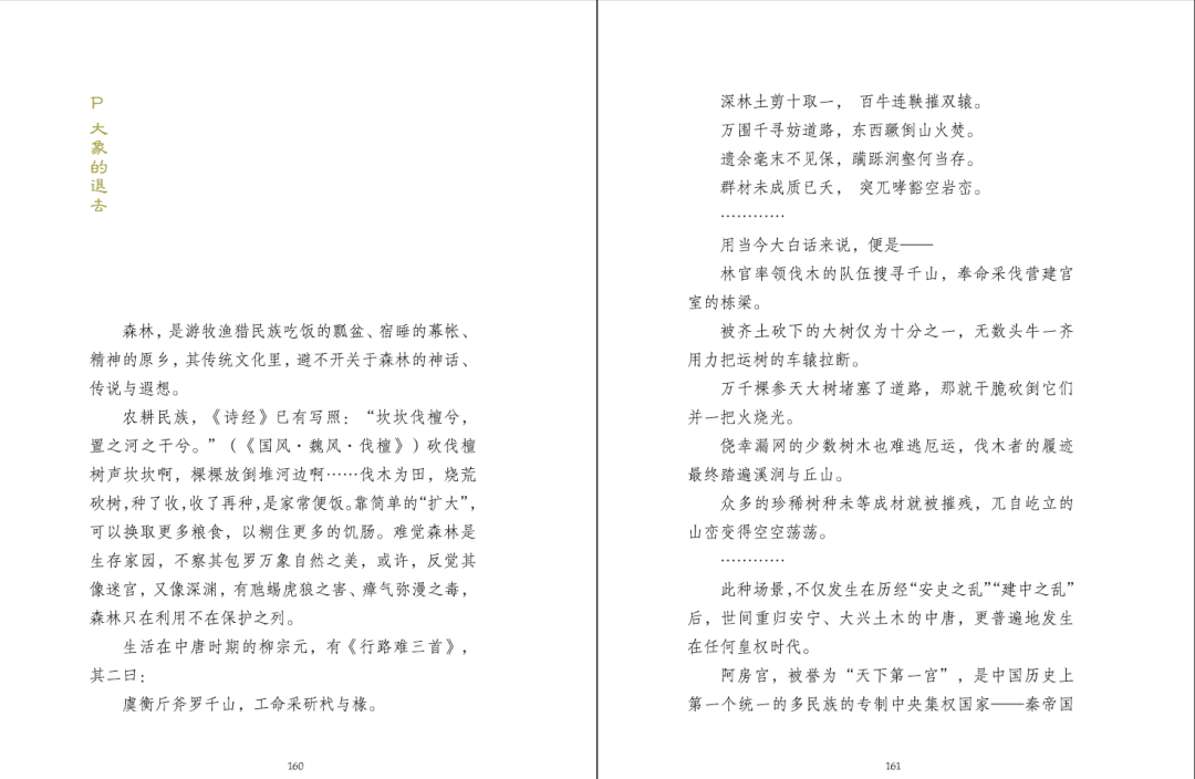 再比如在解读古诗文时,书中也做了通俗化的处理。引用柳宗元的《行路难三首(其二)》后,胡平直接用大白话翻译:“林官率领伐木的队伍搜寻千山,奉命采伐营建官室的栋梁。被齐土砍下的大树仅为十分之一,无数头牛一齐用力把运树的车辕拉断。”这种处理方式,让传统文化从需要死记硬背的知识点,转变为可以理解、可以感受的生动画面。