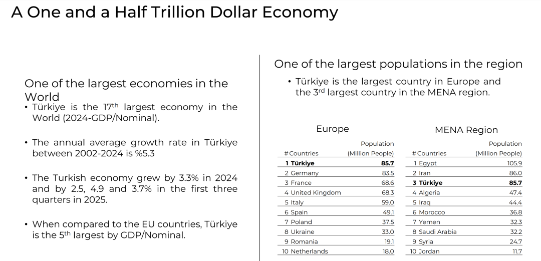 从宏观层面看,土耳其不乏进入主流投资视野所需的基本硬指标。2024年,土耳其已跻身全球第17大经济体,同时也是欧洲第五大经济体。这一体量本身意味着,其国内市场已具备支撑多元商业模式、规模化商业活动的现实空间。