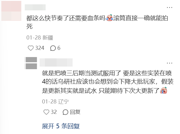 不过,如果从整个喷喷3自发售到如今的更新运营情况来看,血条这一改动遭来如此声势浩大的责骂,除了本身对游戏的颠覆之外,更像是玩家们变相的一次集中性的情绪爆发。