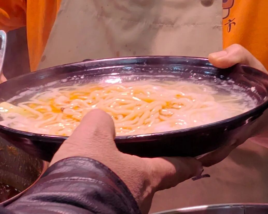 顾客吃着实惠,自然会天天来,免费续面,换来的是高复购率。对我们来说,面的成本在整体里占比其实极低,一袋50斤的面粉,80多块钱,加20斤水,能和出70斤面,一份面半斤,能出140份。