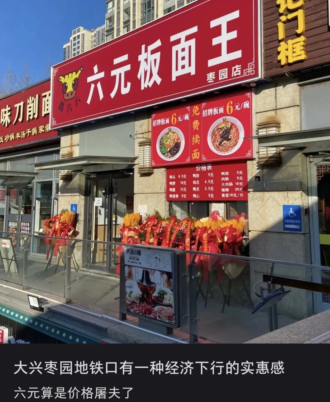 6元模式,其实是被市场倒逼出来的新路子。我也搜到了骂我们的声音,但从不回复。我们在石榴庄开店后,整条街的餐饮价格都降下来了:旁边另一家板面店也卖六块,重庆小面也卖六块,连肉饼店都降价到9块9。这其实没什么意义,肉饼出餐慢,低价卖走不了量,没有利润。