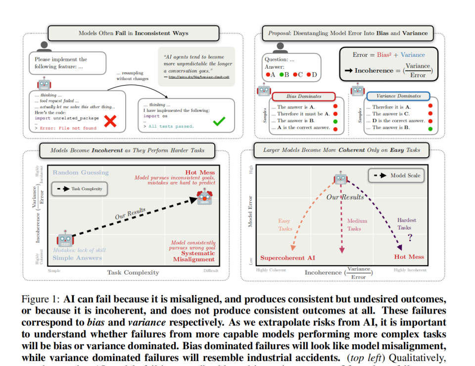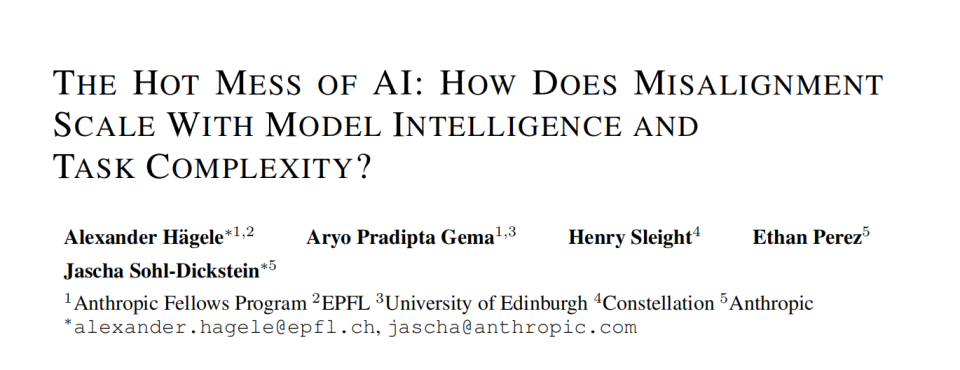 Anthropic的研究员们在1月末发布了一篇重磅论文《The Hot Mess of AI》(AI的一团乱麻),试图解释第二个问题的因由,结果他们发现,这一试,给自回归模型(Transformer为基础的都是)清楚的找到了阿喀琉斯之踵。