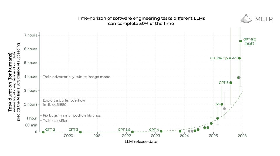 上面这个论断其实挺反直觉的,METR不是刚提出的AI编程任务处理时长每7个月翻一倍的新Agent摩尔定律吗?