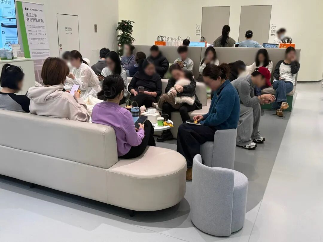 晚上九点,成都一家轻医美诊所的候诊区仍灯火通明。玻璃门外,商场人流已明显减少;玻璃门内,取号屏上的数字却仍在滚动刷新,前台不时提醒,“后面的客人稍等几分钟。”