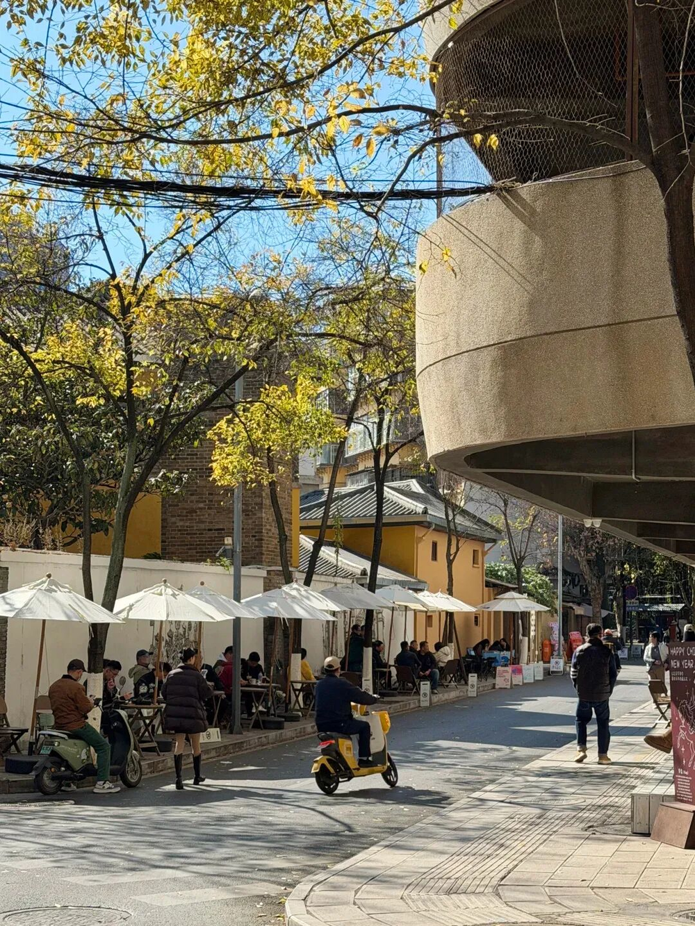 非要说昆明巡津街和上海武康路有什么相似,总结三点:成排的法国梧桐,步行友好的精致小马路,以及设计精巧的法式洋房。当时还只是吸引了一小批文艺青年专程来扫街,商业味不浓,有一种大隐于世的从容安定。