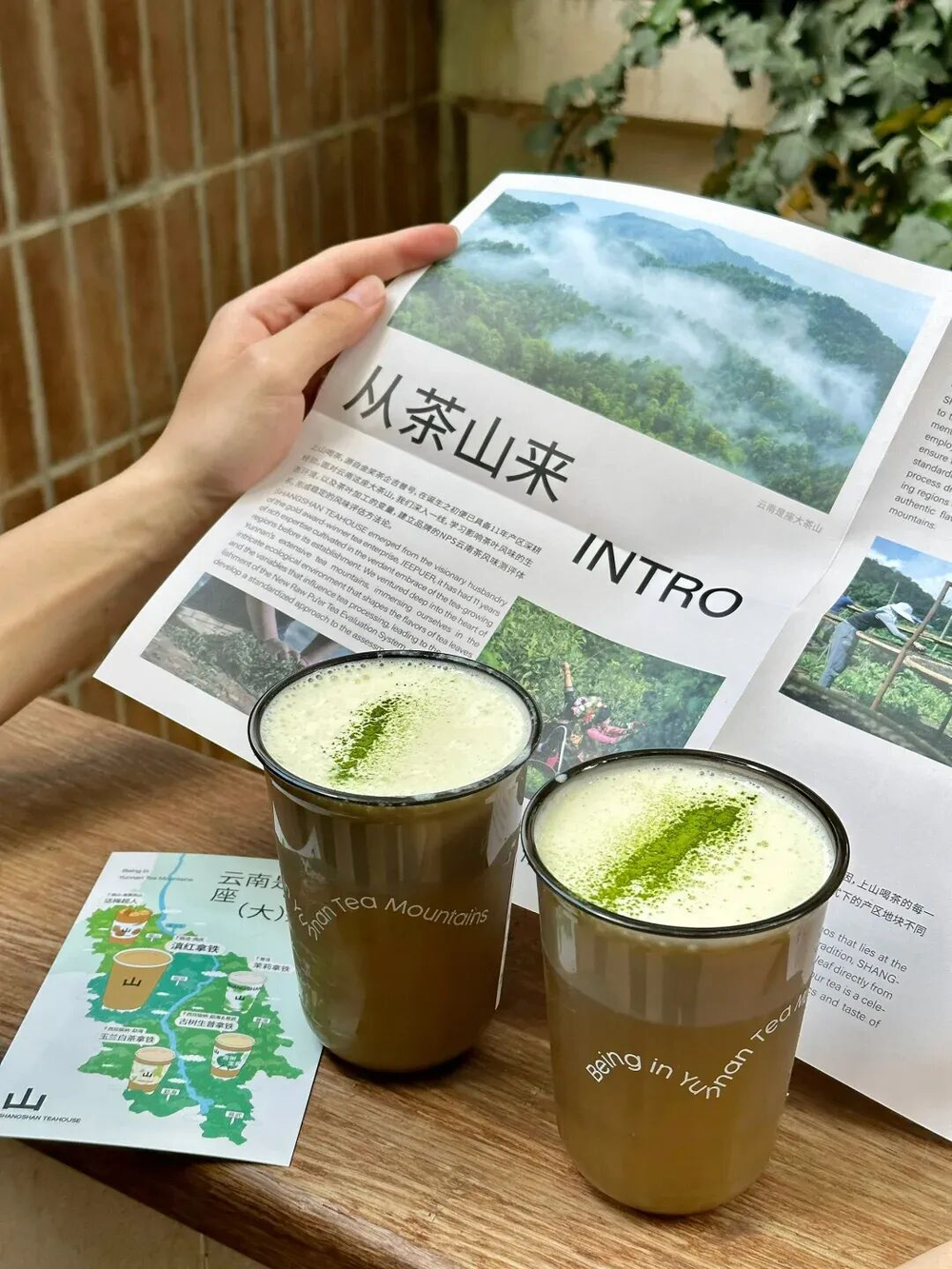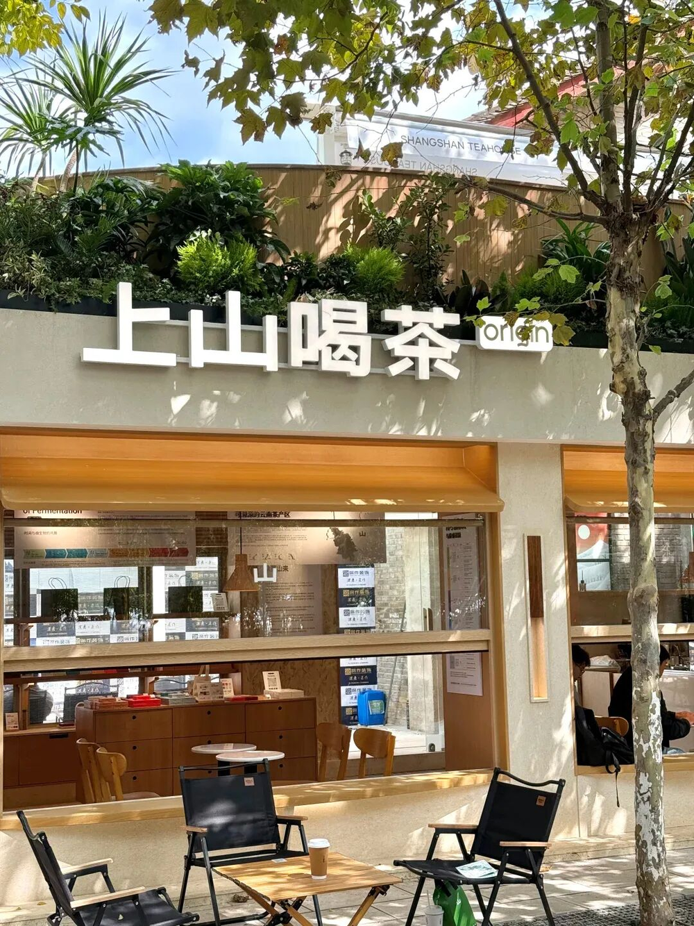 另一家值得聊的品牌是上山喝茶,门店距离幸也敬德店不足百米。两层小楼带露台,室内是大面积的原木色,亲切不高冷,就像家楼下的小店,不端着,没负担。