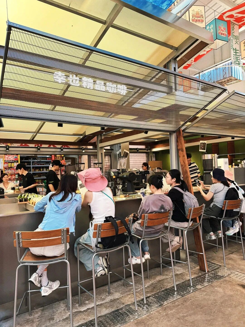 这个叫“巡津归邻”的小项目,自去年秋天试营业,几乎每天外摆都坐满了人。白色遮阳伞一字排开,挤满了品味生活的“新村民”,顺势把整个巡津新村推成了社交热点。