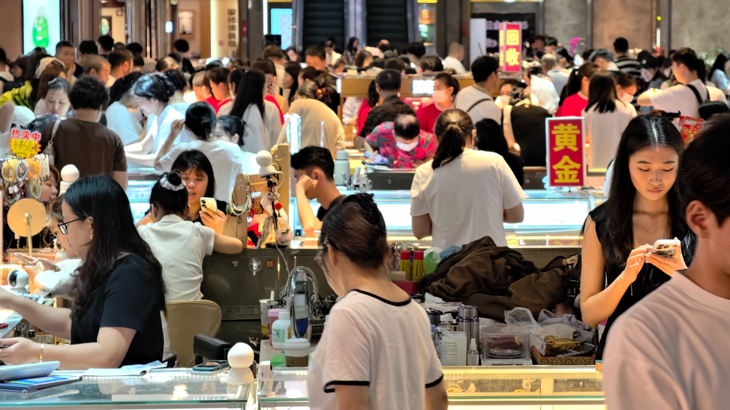 近一段时间,金价在暴跌后震荡上行,水贝街头仍旧珠光宝气。