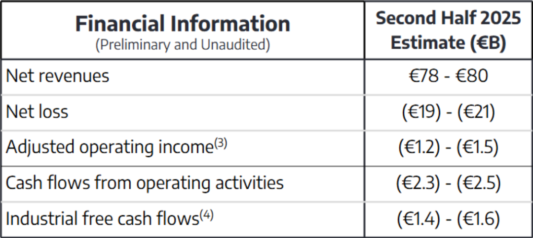 Stellantis 2月6日发布财务公告,表示2025下半年预计亏损1558.65-1722.72亿人民币(190-210亿欧元)。