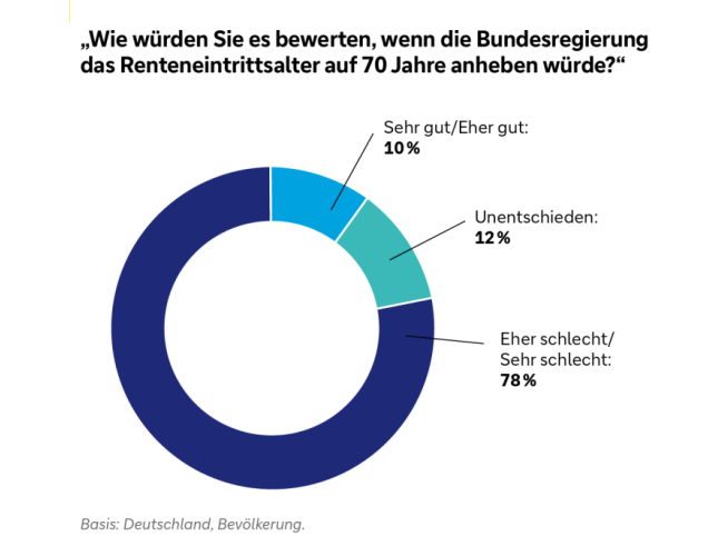 具有明显增值的模式受到了广泛的支持,如60%的人认为“早期启动养老金”(Frühstarterrente)是一个公平且易于理解的工具。这个模式设想国家从孩子6岁起至成年,每月向其个人养老保险账户存入10欧元,成年后可以继续进行私人储蓄——这个政策将激励人们为自己的保障承担责任,并将尽早引导年轻人进入私人养老保险和资本市场。