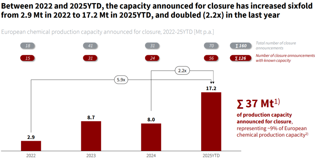 图说:2022-2025年欧洲化工厂关闭产能激增六倍