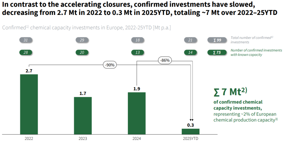 图说:2022-2025年欧洲化工厂新增投资与资本支均断崖式下滑