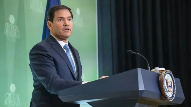 2026年2月4日,卢比奥国务卿在美国国务院就关键矿产部长会议同新闻媒体交谈(图源:德国之声)