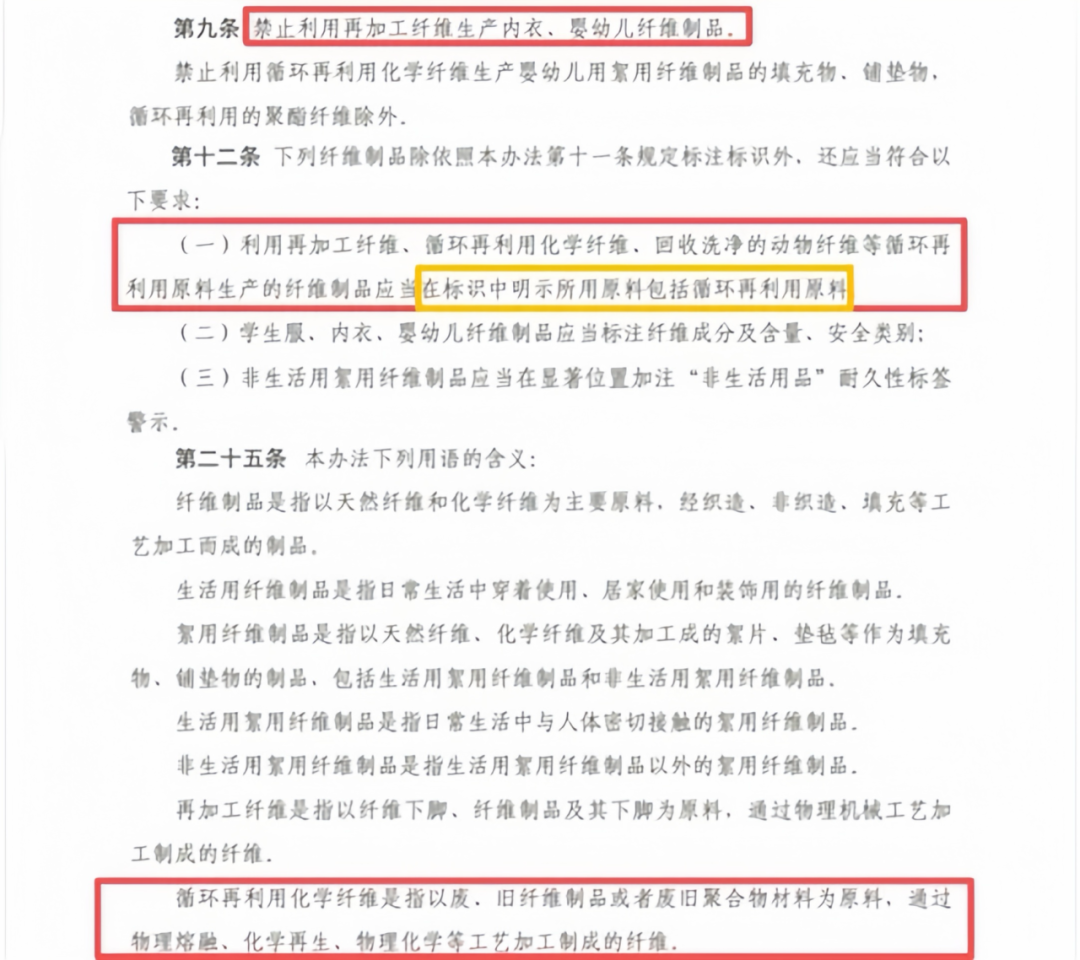 图5《纤维制品质量监督管理办法》第9、12、25条原文