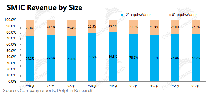 中芯国际从2022年一季度起不再披露各制程节点的收入占比,仅披露了8寸和12寸晶圆收入占比,这就无法细致地看到每个节点的收入变化情况。