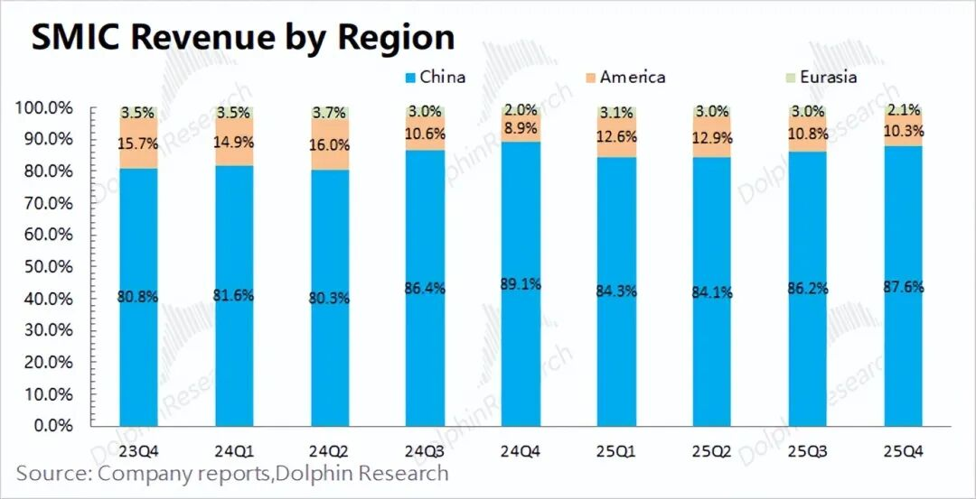中芯国际本季度在中国区的收入为21.8亿美元,环比增长6%,主要是受国内市场的消费电子类(小型电子产品)的需求增加带动。由于公司当前收入中将近9成来自于中国国内市场,“国产化的本地化需求”将公司业绩的主要推动力。