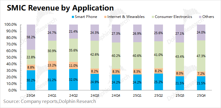 2025年第四季度中芯国际实现营收24.9亿美元,环比增长4.5%,好于指引区间(环比增长0-2%),本季度增长主要由消费电子市场(智能小型电子类产品)备货需求的带动。