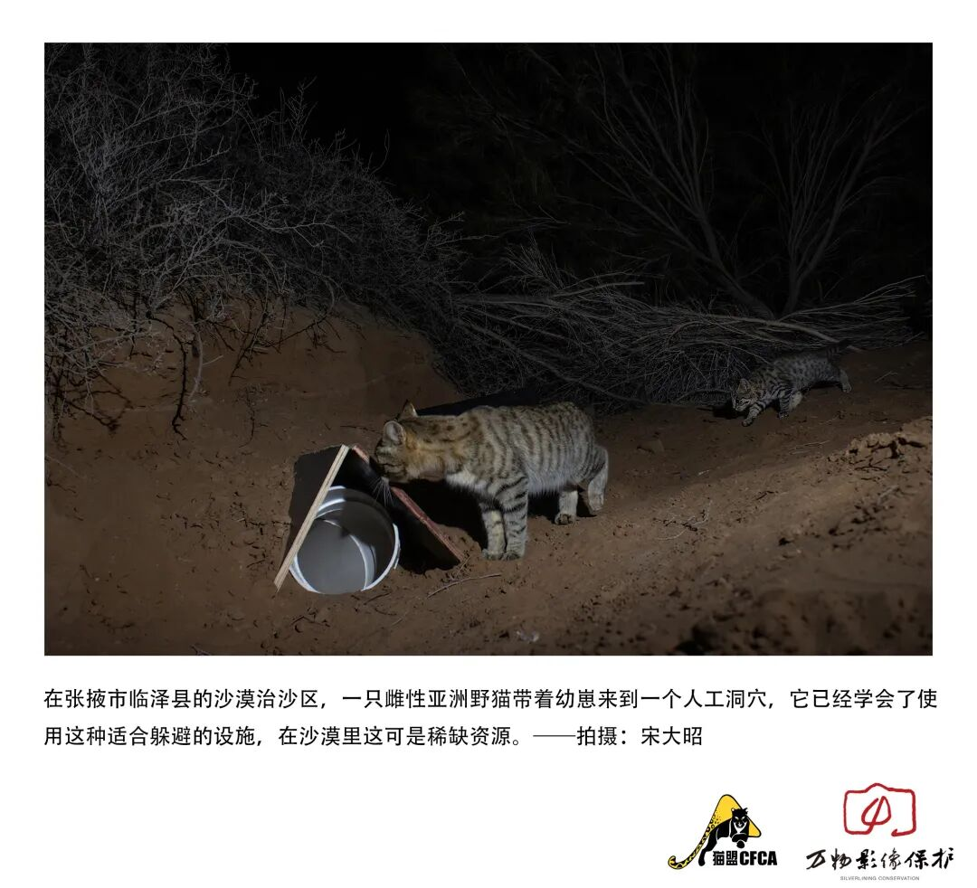 2025年,我把我的猫科造像计划定位于拍摄猫科动物与人类关系的照片。除了在山西拍摄,我也去张掖拍摄荒漠里的动物。众所周知,西北的荒漠也正在历经史无前例的景观改变(沙、戈、荒地区是新能源建设的重点选址场所),而我们也在尝试给沙漠里的兔狲和亚洲野猫提供更加稳固且能防狗的人工洞穴和旱季补水点。