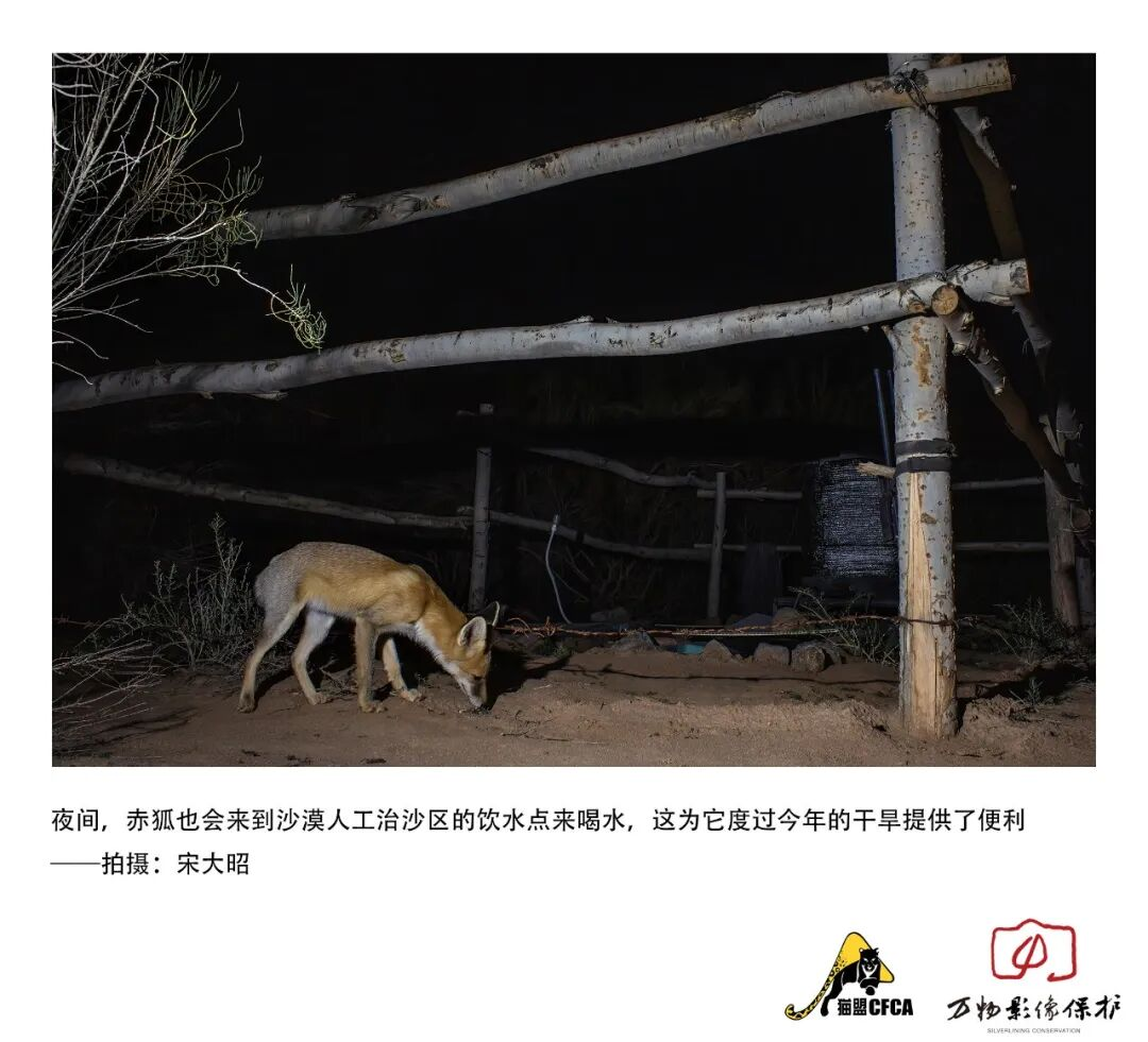在此期间我也去张掖进行了几次拍摄。与西北组的同事夏心悦搭伙,我们在不同的荒漠环境里多次尝试,拍摄内容包括治沙区的狗獾洞穴、人工梭梭林里的人工巢和补水点、荒漠新能源下的兔狲。