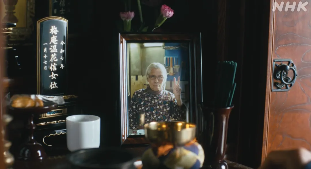 奶奶的遗像旁边,摆着弘人用白色绣球花瓣做的装饰。