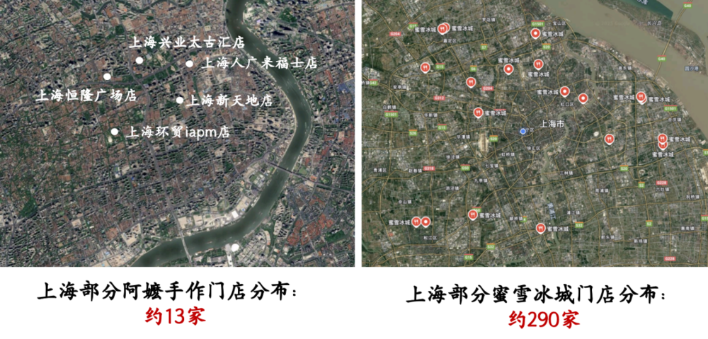 据窄门餐眼数据显示,上海目前有290家蜜雪冰城,核心城区共有62家门店仅占21.4%,其余近80%都集中在非核心区域