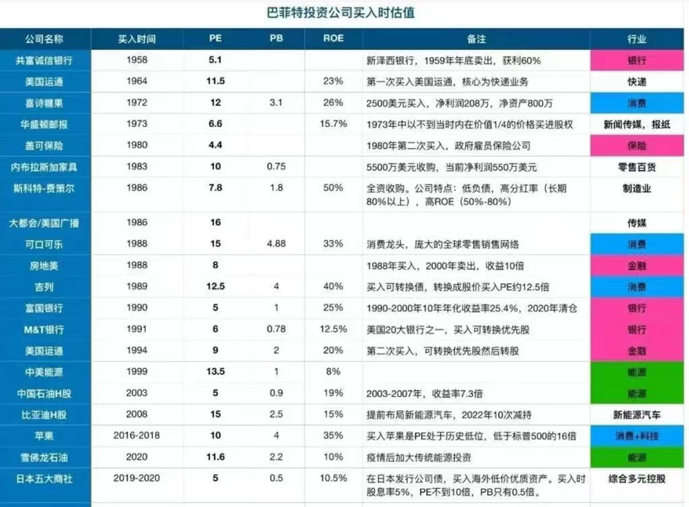 你要知道,老巴给企业估算内在价值时,一般是不看股价的,因为股价会影响它的判断,一般情况下,他的出价都不会超过 15 倍市盈率(下图所示),平均 PE 甚至只有 9.45 倍,比如日本商社就给了 5 倍(其实是个稳赚不赔的套利操作)。