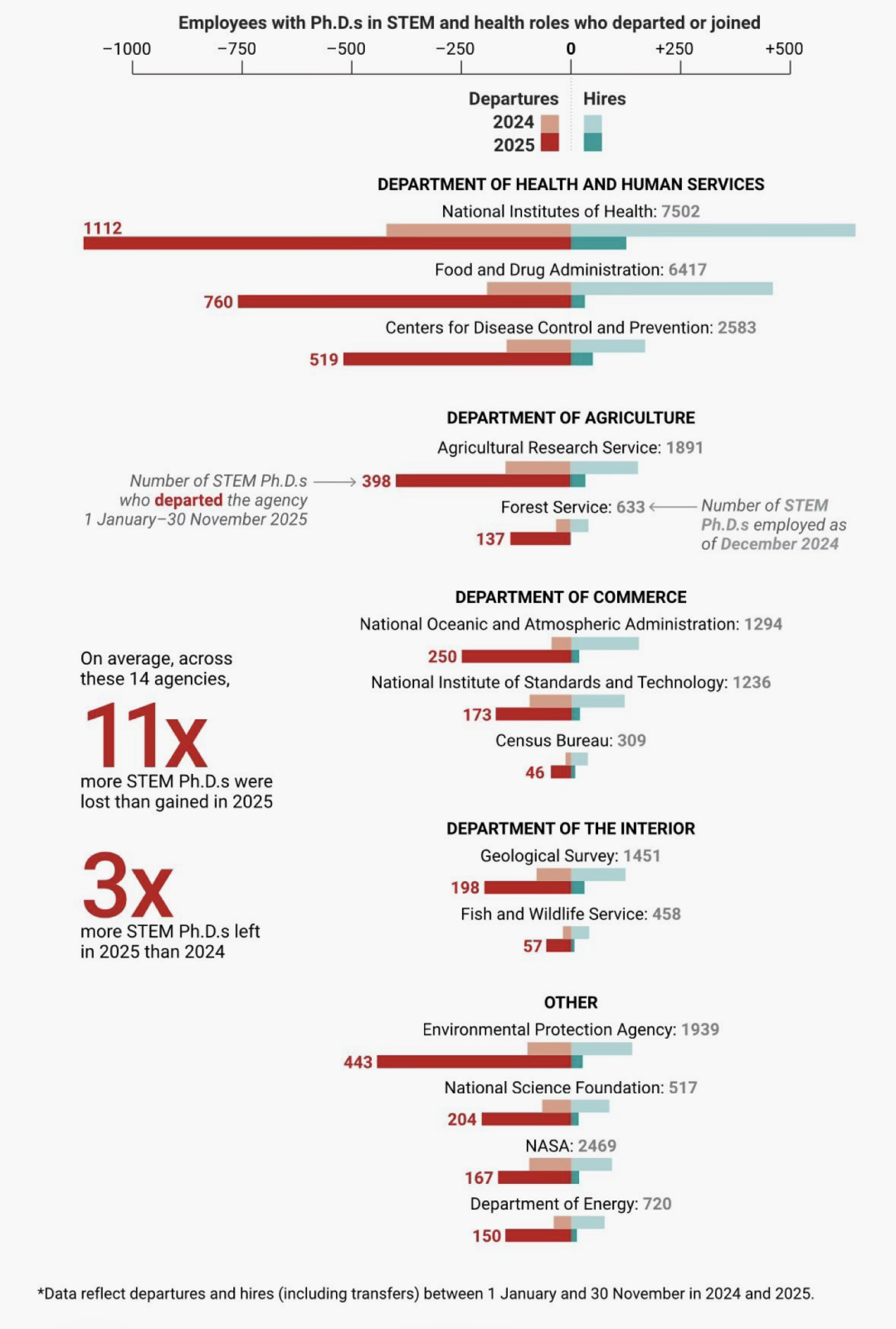 并没有。前白宫科学家Dr. Catharine Young在评论区补上了更绝望的一笔:仅仅去年一年,美国联邦政府就流失了超过10000名STEM领域的博士。