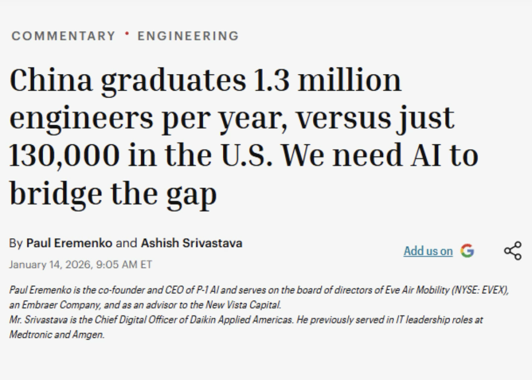 2026年开年,美国互联网上影响力最大的左翼政治评论员、中国人民的老朋友Hasan Piker(哈桑·派克)说到一个数据:“中国去年毕业了130万工程师。美国?13万。”