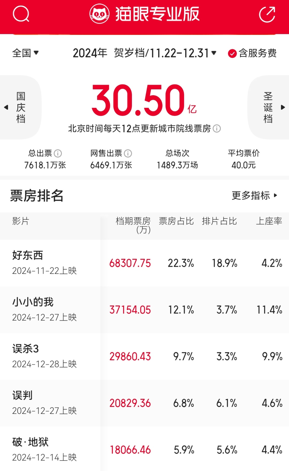 国庆档的21.05亿票房和贺岁档的30.50亿票房,都被打回十年前。
