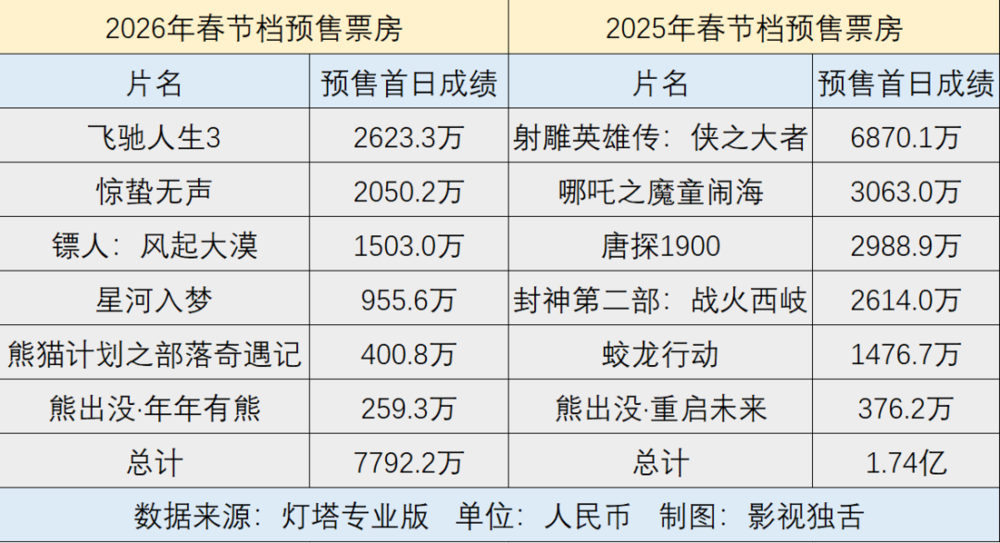 预售开启后,今年春节档的预售成绩相较去年同期只有一半,引发第二轮失望。