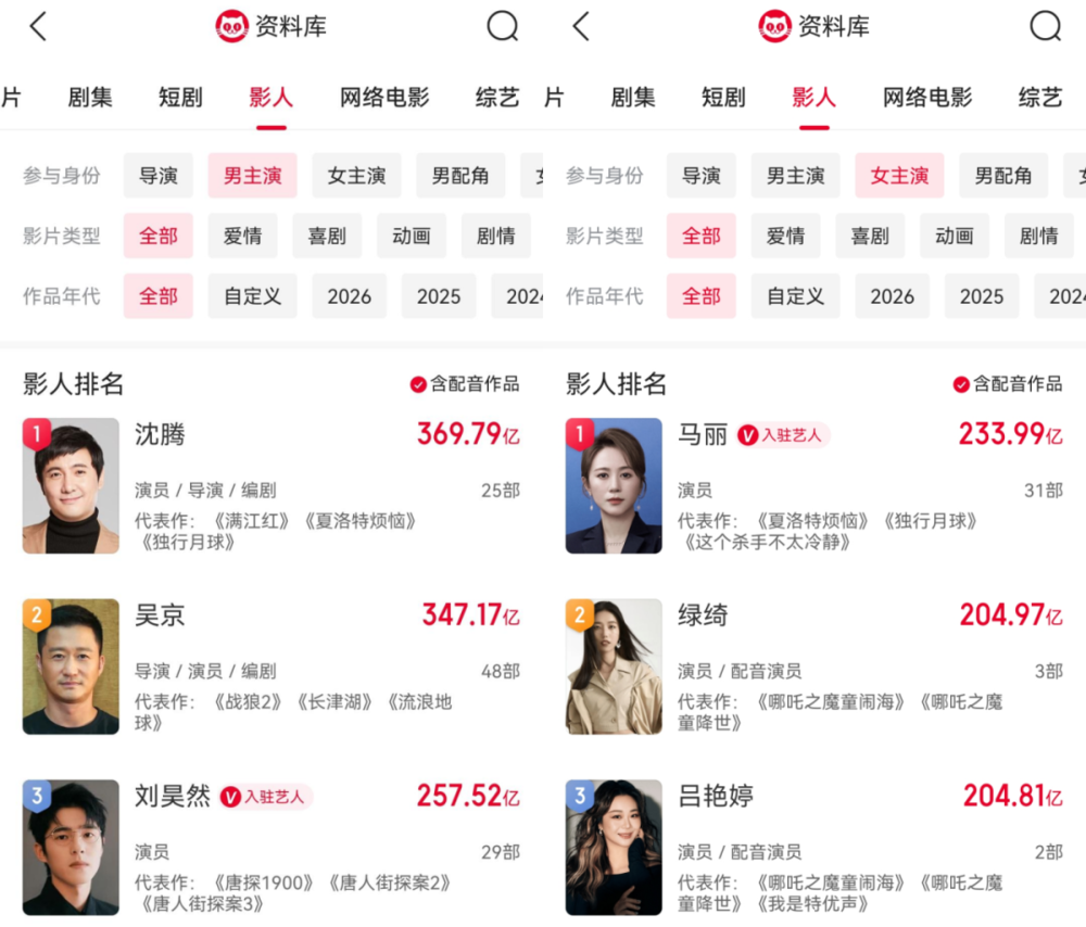 别的档期不会这样,粉丝贡献2亿票房就足以让成绩单好看。可在春节档,大家要冲击的票房目标是20亿、30亿,甚至40亿,那么主演的国民知名度就成了最可靠的保障。