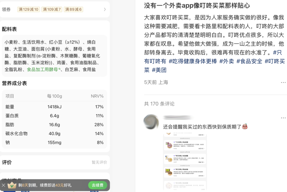 也就是说,打工人把叮咚买菜推上白月光地位,还因为服务。