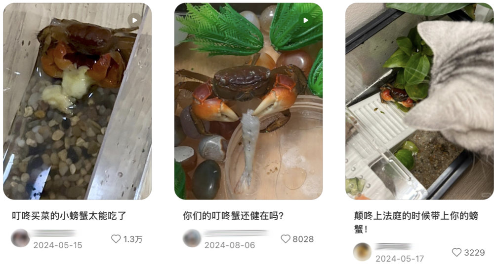 2024年,叮咚买菜推出一款叫做“相守蟹”的产品,看似是普普通通放在缸子的景观螃蟹,直到被各位猫主子注意到,小小的缸子、小小的蟹身恰好完美适合猫猫狗狗,至此,相守蟹逆天改命,成为猫主子的宠物。