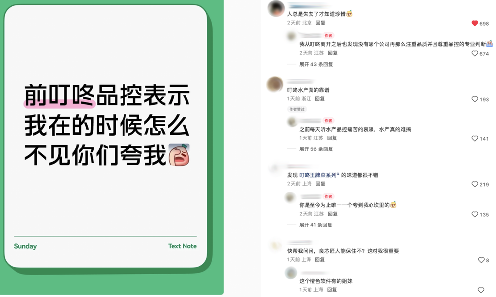 根据官方的数据,截止2025年6月,符合平台“好商品”的SKU占比已达40%。叮咚有关人士向氢商业透露,“这是因为在公司内部,研发和品控的话语权很高。”看着如今打工人把叮咚买菜捧上天,叮咚前品控在网上发帖分享“我在的时候怎么不见你们夸我”。打工人摇摇头,指出“没有差评就是夸,毕竟,你见过谁买菜没烧出问题还会返回去菜场找老板。”
