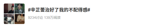 剧集播出后,微博出现了一个热门话题:“辛芷蕾治好了我的不配得感”。