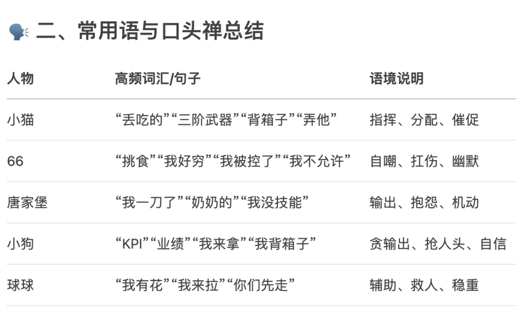 如今玩家被腾讯会议吸引,很大一部分原因也是因为“元宝纪要”常常以一副冷面却吐槽的态势复现富有画面感的游戏场景。玩家一下感慨“这都能看懂”,一下又惊讶“还能这么解读”,最终记住的往往是游戏过程中的“金句”和当时的感受,胜败和评分倒显得没有那么要紧了。