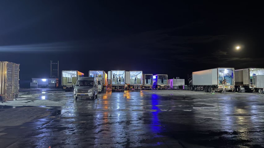 东风螺运输出岛集散地晚上灯火通明