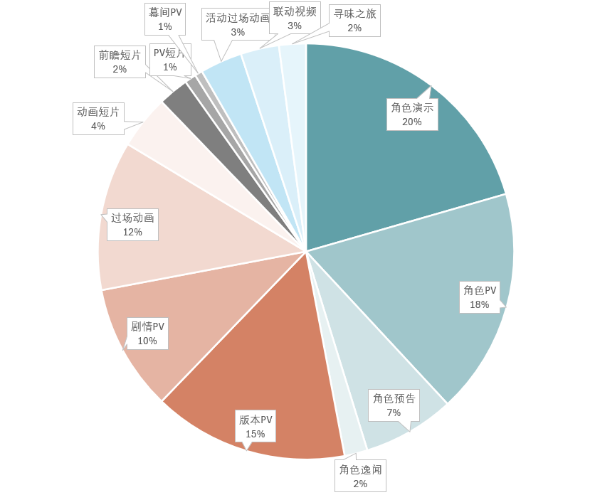 在《原神》宣发体系中,视频用途的分布占比如下图所示: