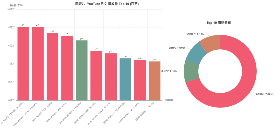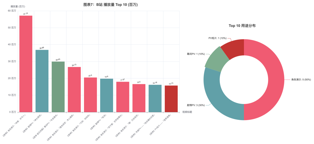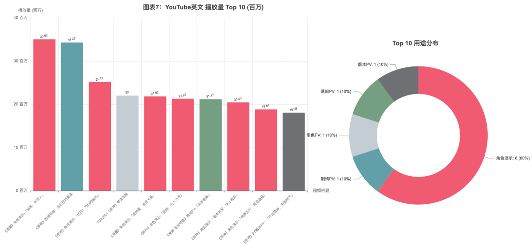 此外,通过对比《原神》官方在海内外不同视频平台的播放量Top 10榜单,我们也能清晰地看到全球玩家在审美取向上的共性与分野。