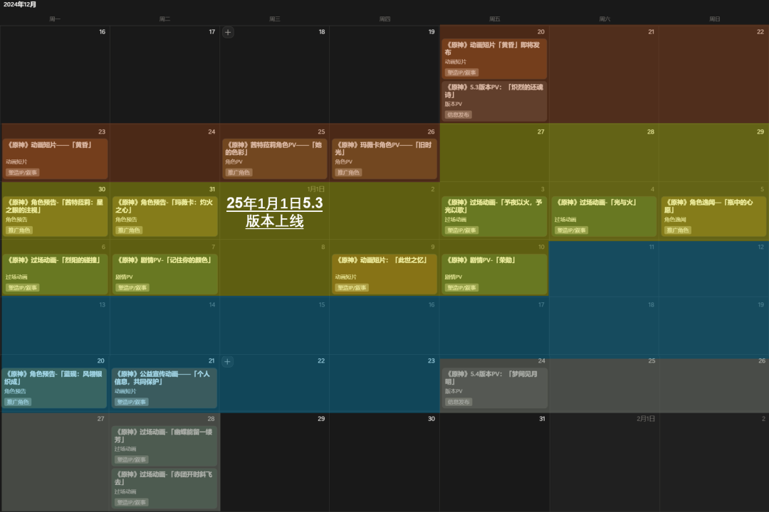 《原神》剧情PV的发布周期图:新版本上线后一周内集中发布