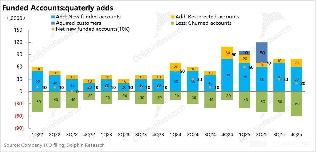 从交易流水角度,行业四季度交易流水环比下跌9%,Robinhood APP下跌了14%,在上涨行情中,作为散户平台HOOD有更高的上涨弹性,在下跌的时候,交易量跌幅也更高。