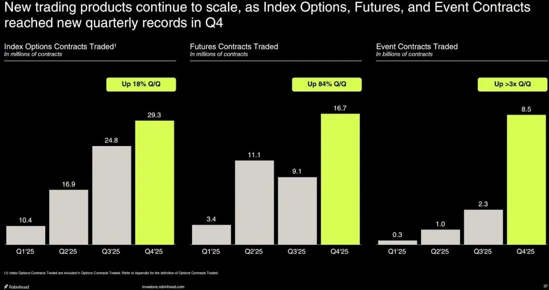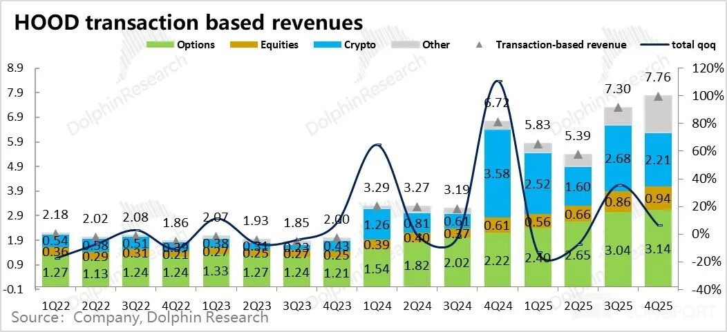 最终,公司总体的交易类收入单季达到了7.8亿,超出上季度的7.3亿。这里超出上季度的收入其实主要来自于其他收入1.5亿(预测市场、提现、期货等),直接环比翻倍。