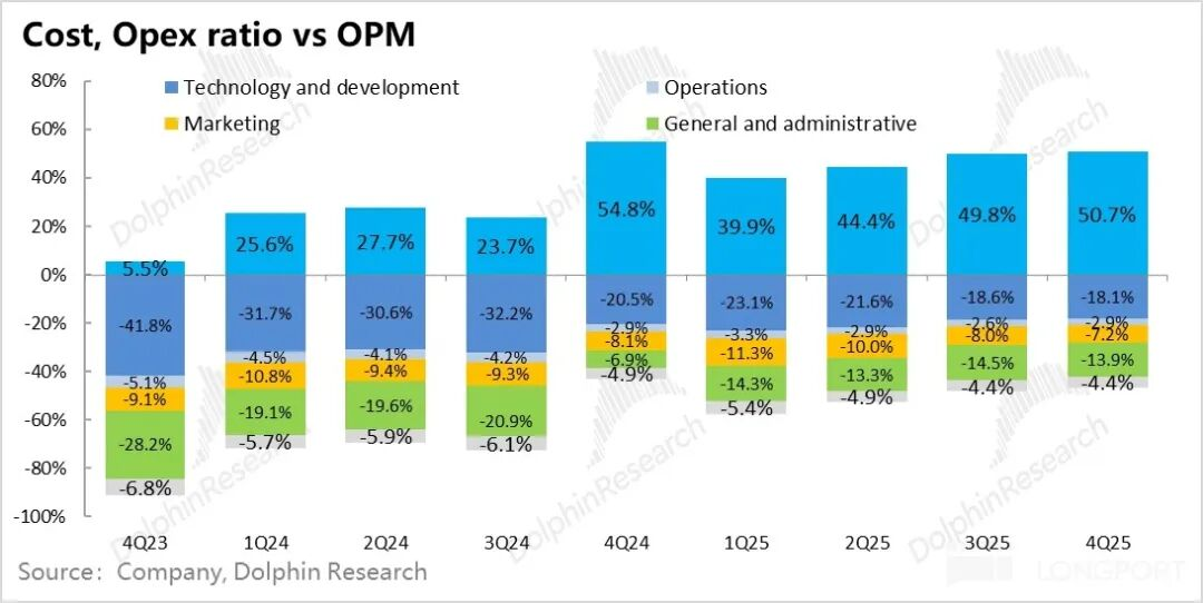 四季度,公司费用端基本兑现控费承诺:基本收入环比0增长,费用0增长,这里主要是占比最大的研发费用稳住,同时管理费用没有进一步增长。