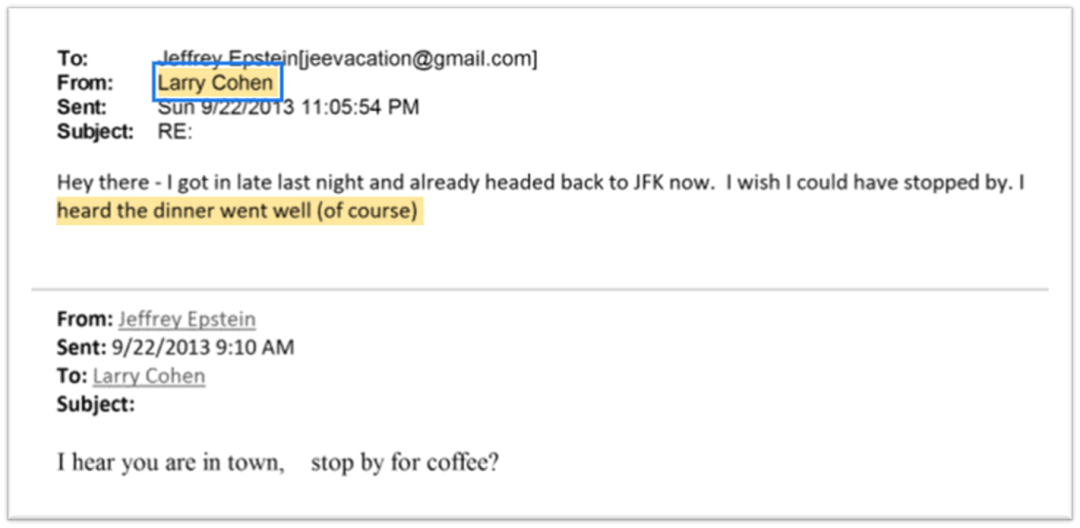 两天后,Larry与爱泼斯坦的邮件联系中称听说晚宴效果很好: