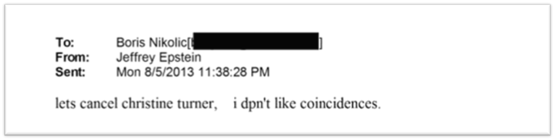这似乎暗示之前爱泼斯坦与Boris希望找到Christine Turner,从她身上获取和盖茨讲价的筹码,中间发现了什么,让爱泼斯坦觉得Christine Turner对他们来说或许不是很可靠。