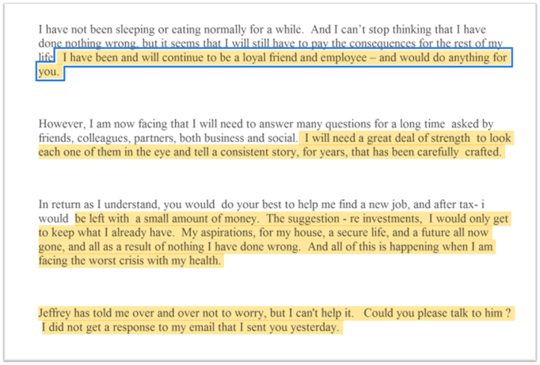 几个关键点,第一,他表示自己对盖茨忠心耿耿,啥错都没有却要承担后果,似乎暗示盖茨这是让他背锅;第二,未来多年他都要有一个合理的“故事”回应其他人的疑问——这等于暗示让他走人的理由上不了台面;第三,他提出自己将蒙受巨大的经济损失,这暗含讨价还价的意味。