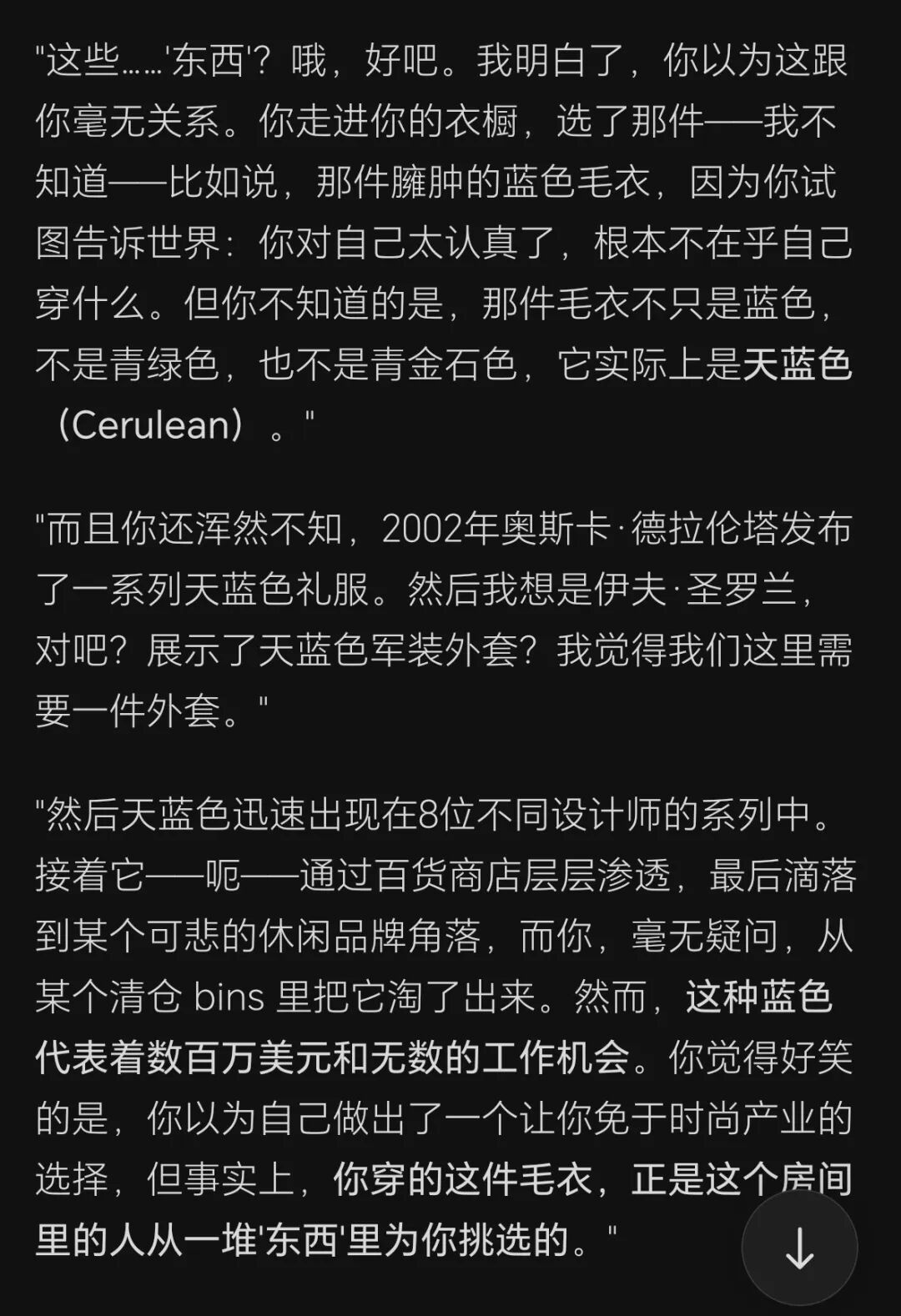 新范式的产生是最难的,是真正的元创新。在既定范式下,可以有非常多的组合形态。普通人每天争论的很多内容,乃至学术研究每天争论的很多内容,绝大部分其实都是既定范式下的争论,都不是元创新。部分读者可能难以理解,作者引用一段《穿Prada的恶魔》里Miranda与Andy的经典台词,就可以大致感受: