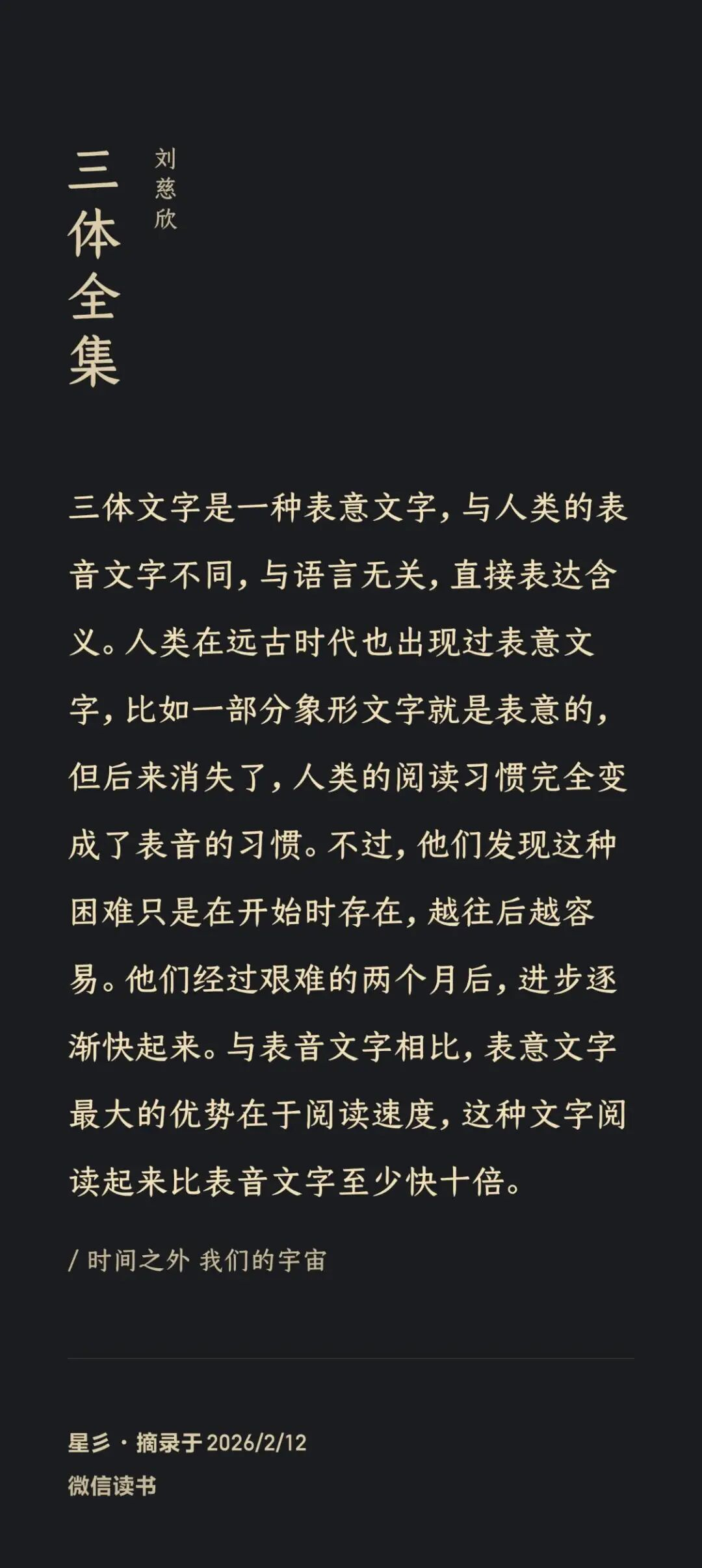 ——设定里三体人的思维是透明的,他们可以互相“看”到对方的想法,从而进行交流,所以使用“所见即所得”的表意文字也算合情合理。